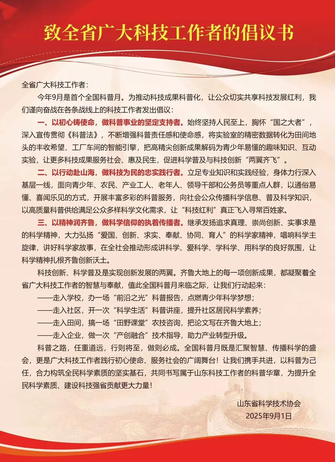 致全省广大科技工作者的倡议书