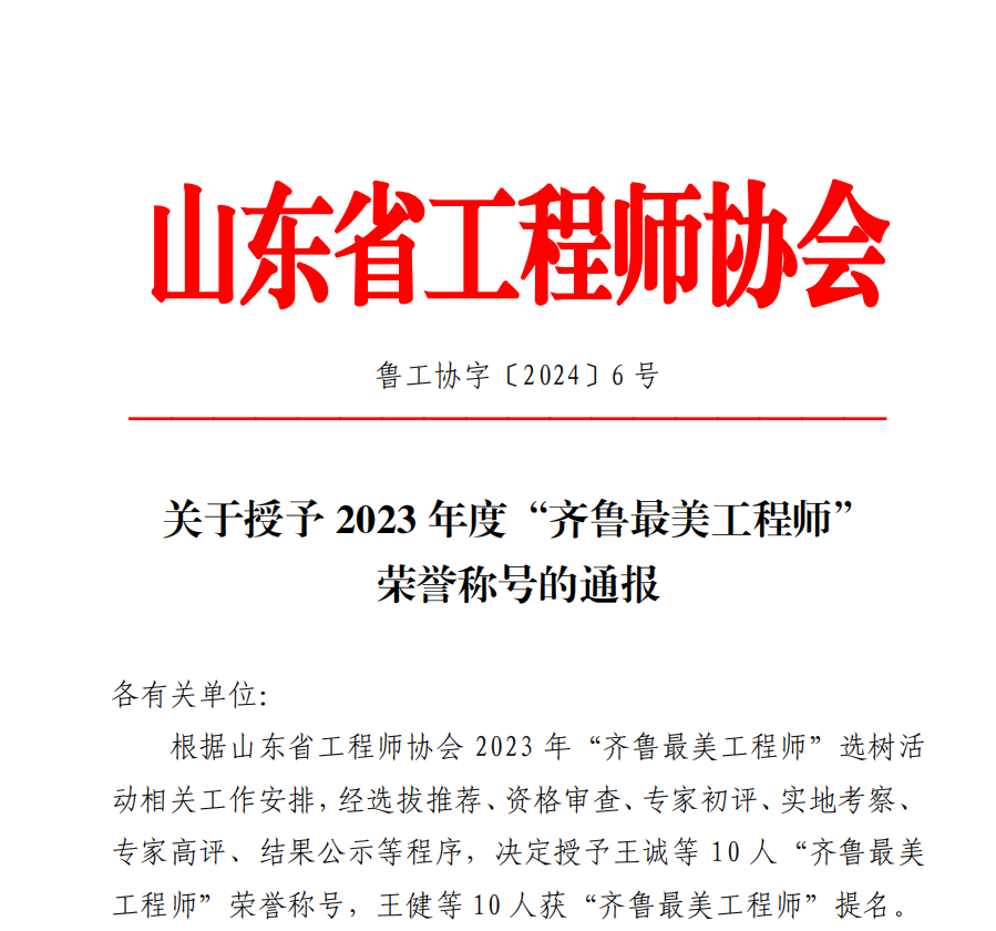 关于授予2023年度“齐鲁最美工程师” 荣誉称号的通报…
