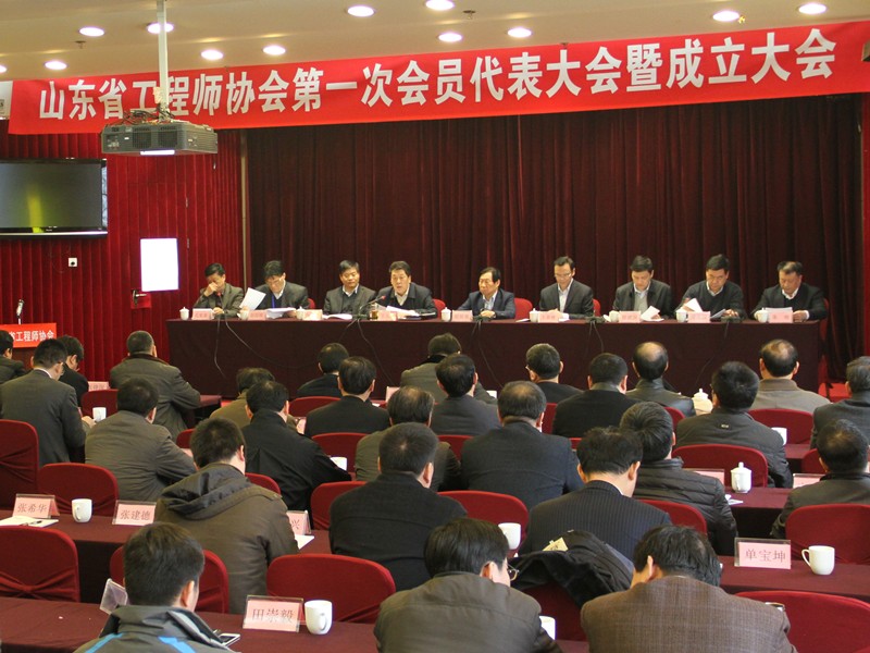 山东省工程师协会第一次会员代表大会由山东大学材料工程学院院长、长江学者赵国群主持。会议选举产生了山东省工程师协会第一届理事会,赵国群当选为第一届会长,会议还选出了副会长,李信培当选为秘书长。会议聘请宋振骐、侯保荣两位院士为协会荣誉会长,聘任张文晋等为协会副秘书长。王春秋副主席和徐建国副局长为协会成立揭牌。朱明副主席在讲话中提到山东省工程师协会的成立意义重大,同时对于协会下一步工作提出殷切希望。大会表决通过了《山东省工程师协会章程》、《山东省工程师协会规章制度》、《山东省工程师协会选举办法》,选举产生了第一届理事会,赵国群当选会长,李信培当选为秘书长,25人当选为常务理事,77人当选为理事。会议聘请宋振骐、侯保荣两位院士为荣誉会长。