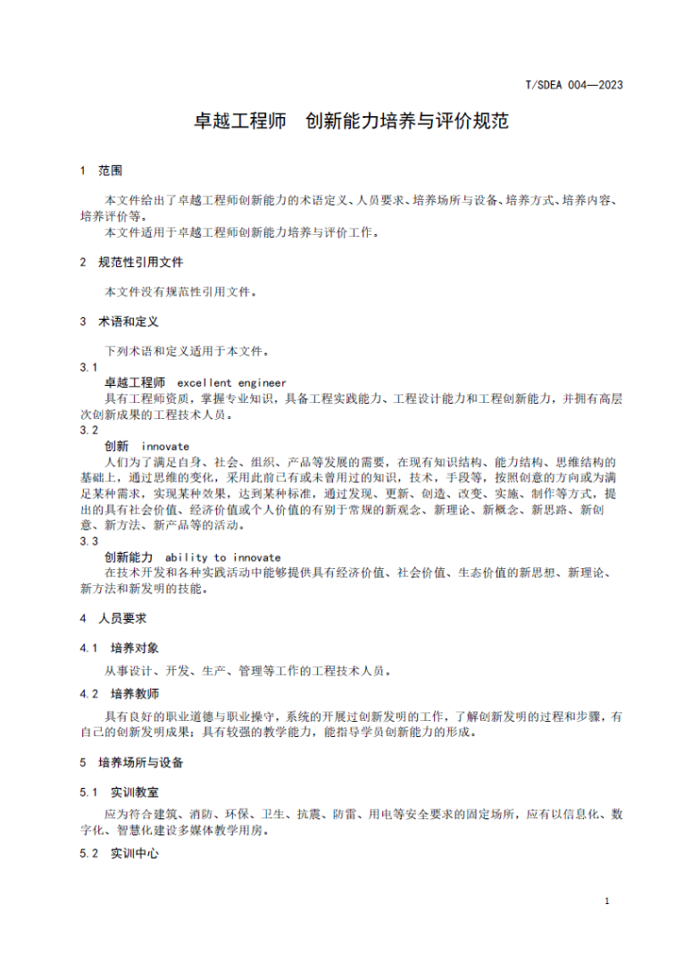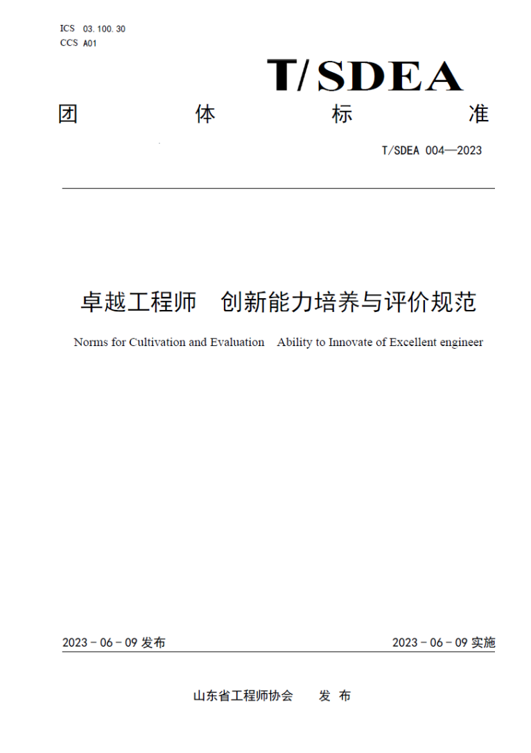 为贯彻实施《中共山东省委组织部 山东省教育厅等9部门关于印发<卓越工程师培育专项行动实施方案>的通知》(鲁教研发[2022]1号),提升工程技术人员的创新能力,山东省工程师协会于2023年发布了《卓越工程师 创新能力培养与评价规范》团体标准。