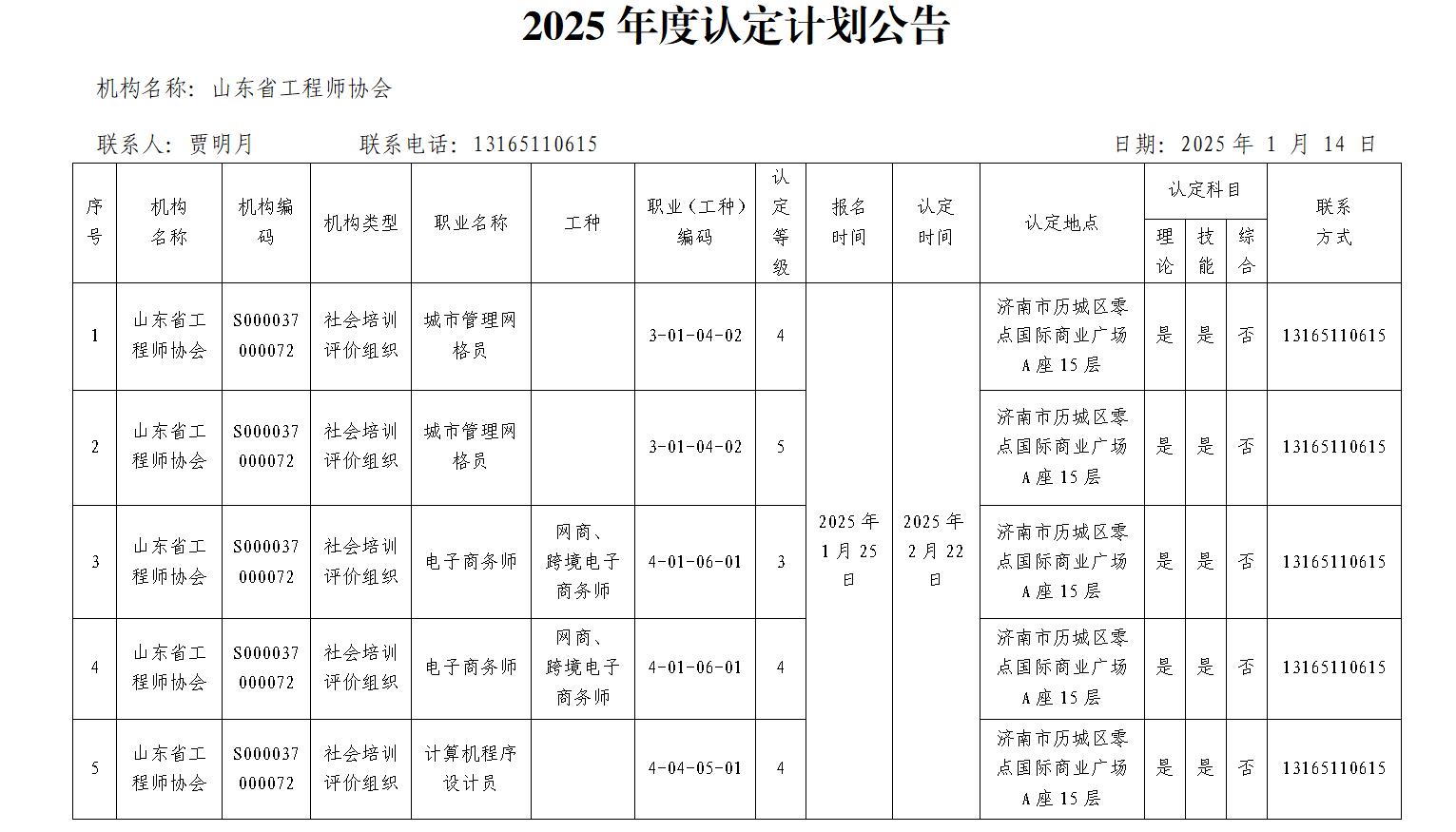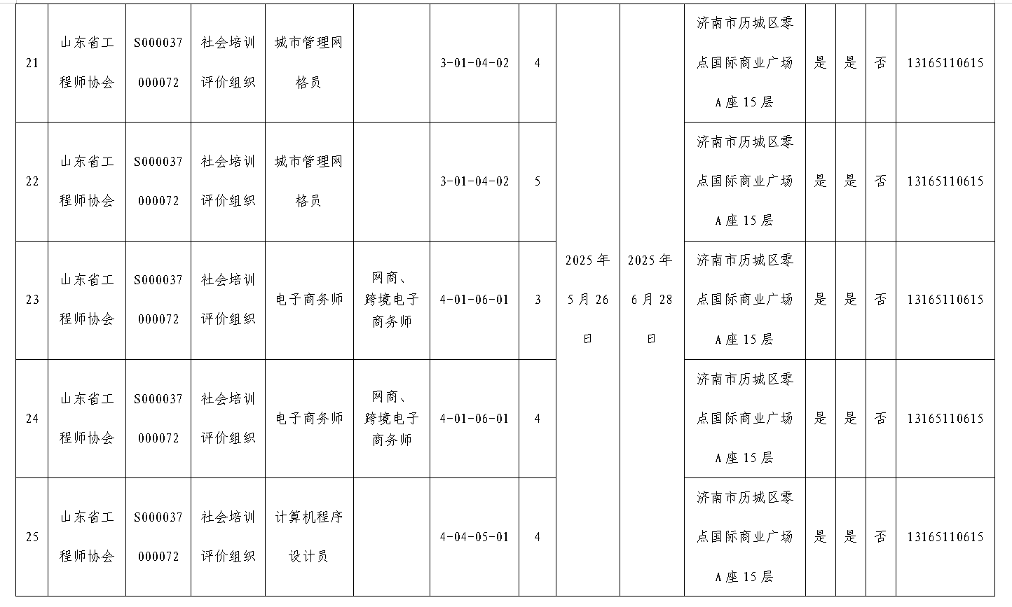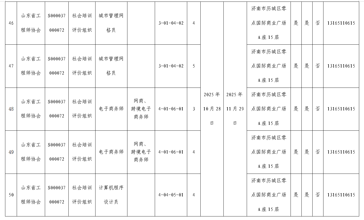 山东省工程师协会社会培训评价组织